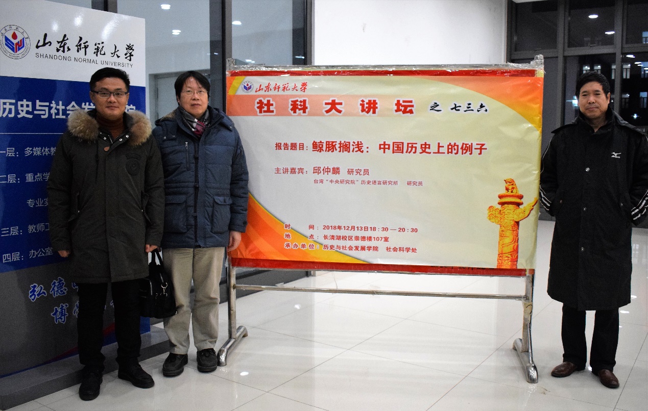为活跃学术氛围,加强学术交流,12月13日,由历史与社会发展学院和社会科学处联合举办的第736期社科大讲坛在长清湖校区崇德楼107教室开讲。本次社科大讲坛特别邀请台湾中央研究院历史语言研究所研究员邱仲麟教授担任主讲人,做题为“鲸豚搁浅:中国历史上的例子”的学术报告。报告由历社学院副院长、博士生导师赵文亮教授主持,院长助理、硕士生导师赵树国副教授担任评议人,青年教师王保宁、张世慧、史慧佳、张婷婷和200余名本科生、研究生共同聆听了此次讲座。